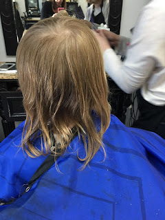 Emily, Hannah, and Claire were scheduled for haircuts earlier this month and we decided to let Abby have her first trim while we were there. Trim is a generous word for how much we cut off, but I still wanted to document it. Heather just snipped the very ends to help it grow in a little better.
